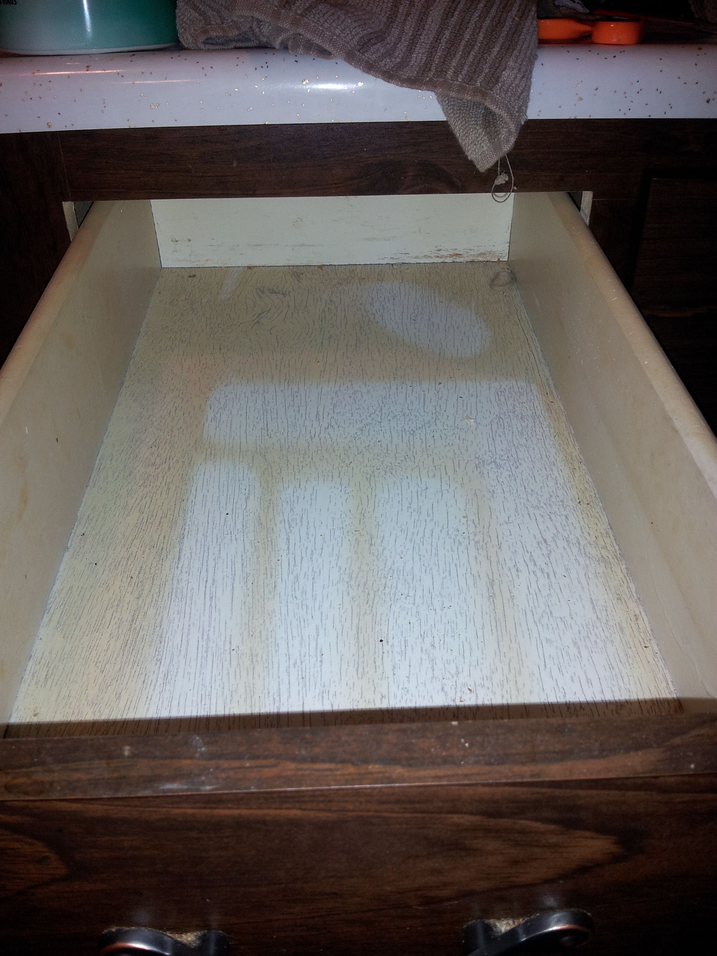 Now think about it, how in the world THAT much nicotine got into the cabinets??? I know it seeps in of course, but OH MY GOODNESS! Look at the cutlery tray!!
