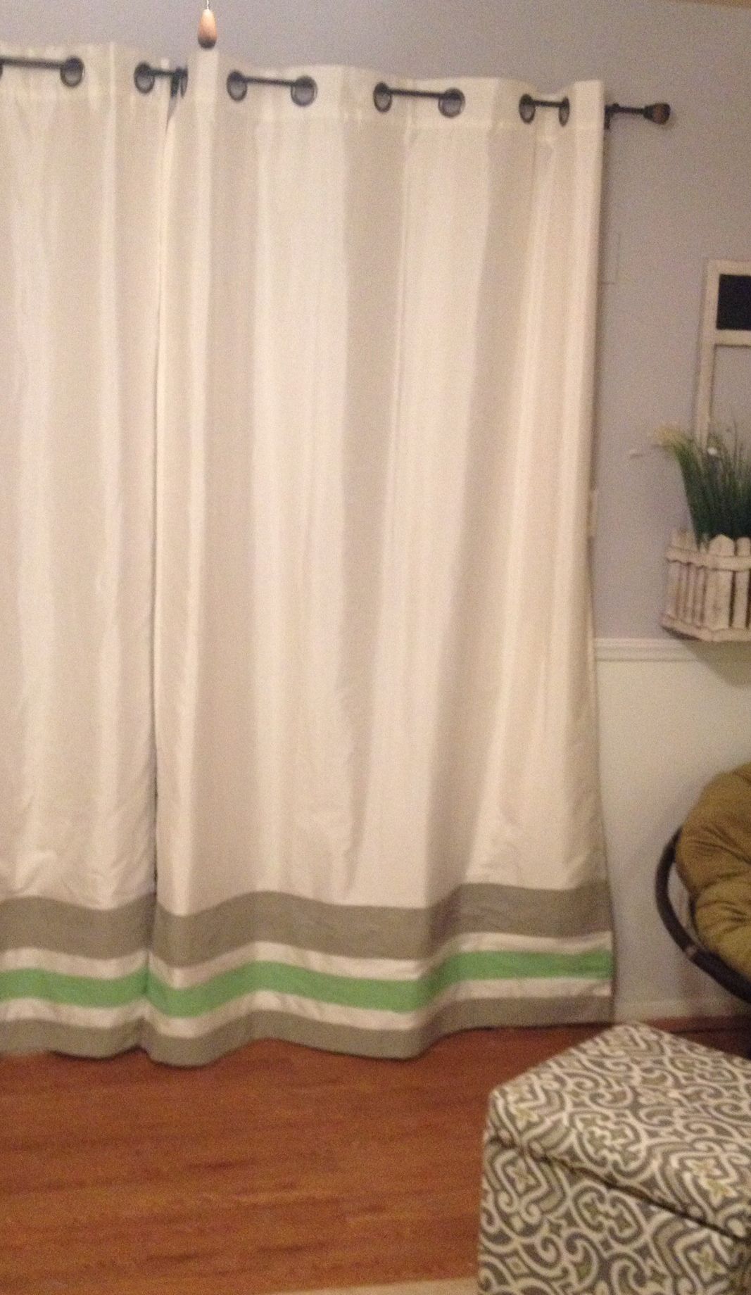 Awhile ago, during one of my bored days (I seem to have a LOT of those!), I thought hmmm….maybe I’ll paint something on the bottom of the white drapes up at the lake house.