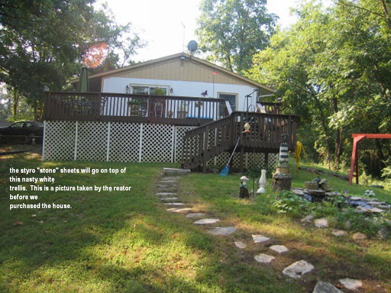 The back of our lake house is, in my opinion, hideous! Well, instead of having to describe it, I’ll just show you a picture which shows where these fake stone panels will go!