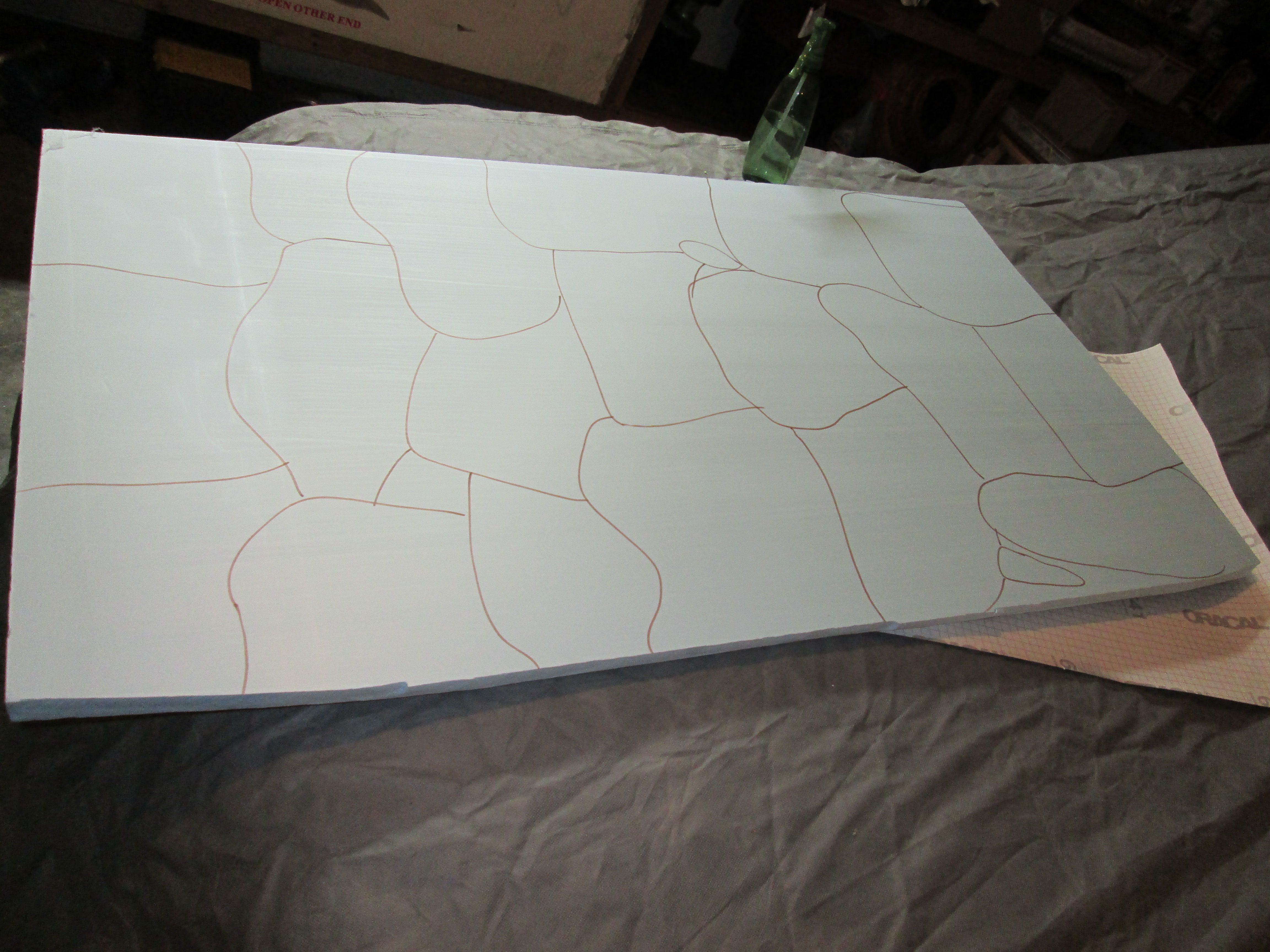 I then drew out my pattern. I just freehanded it. I wasn’t going for a brick look, so I just drew weird shaped stones!