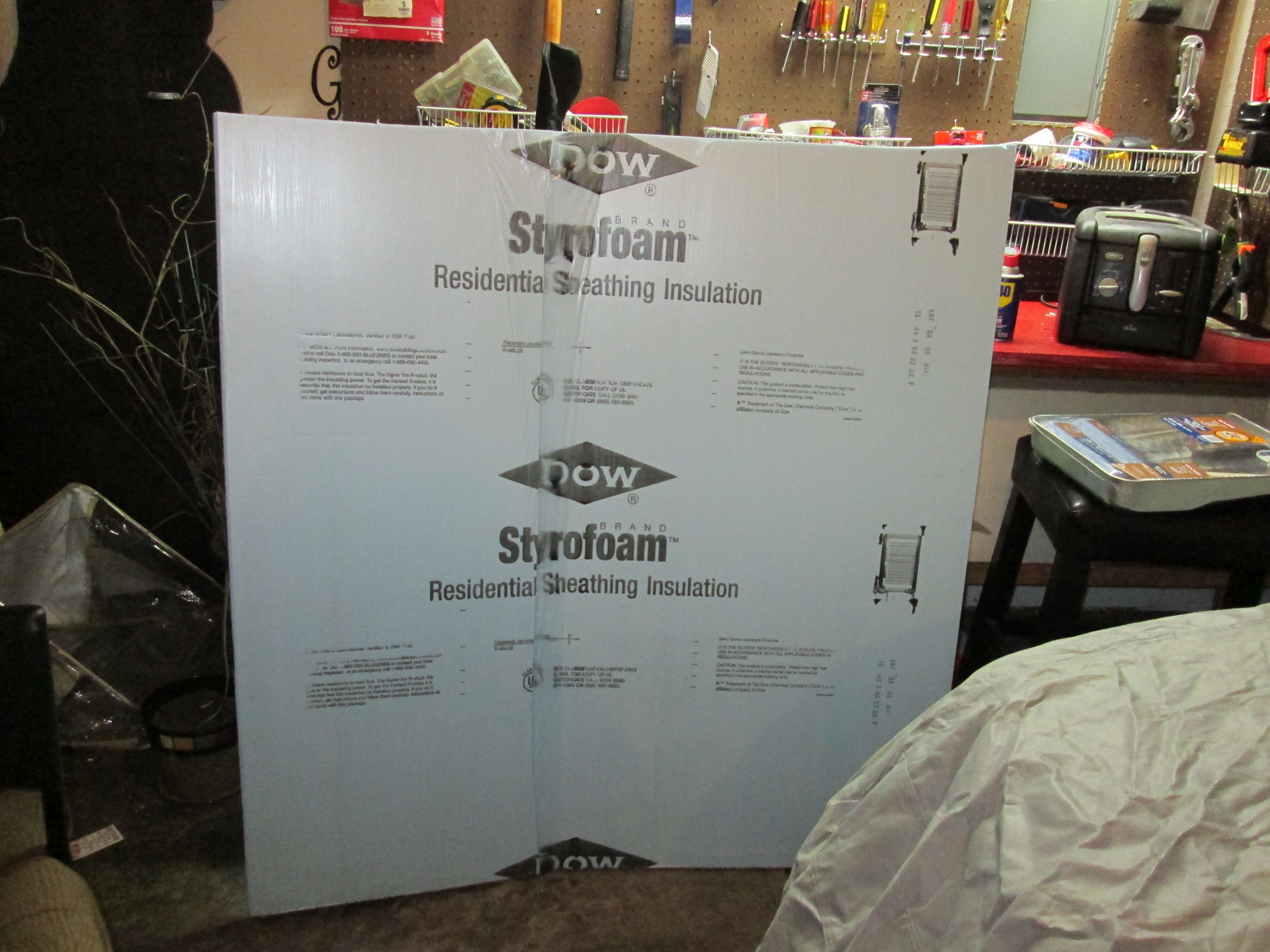 I started with a sheet of 3/4″ Polystyrene. I bought it in Lowe’s for $12.99 for a 4′ x 8′ sheet. I then got the supplies I thought I would need.