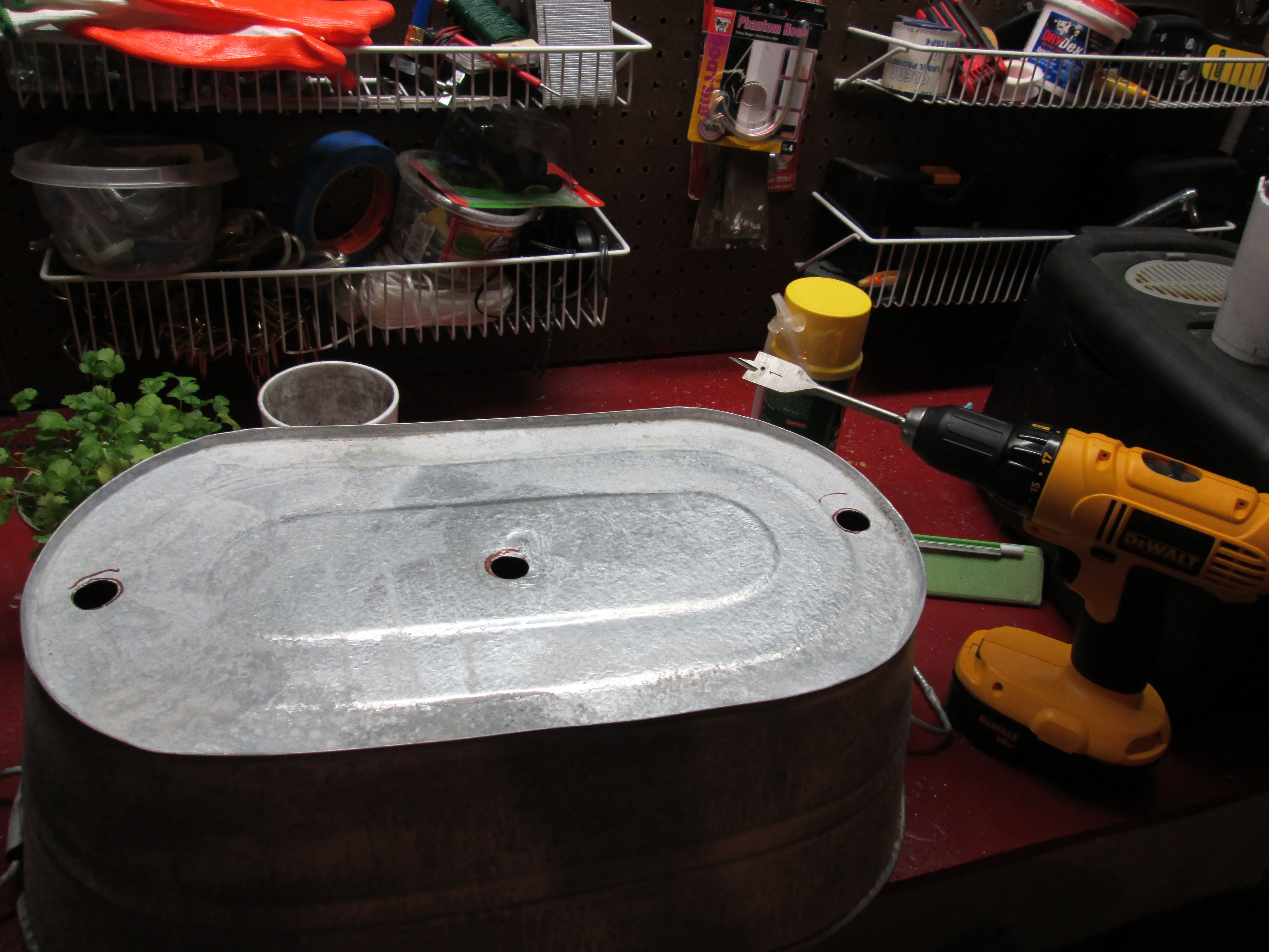 I started hunting for new ones. The largest I could find, other than one that would have been way too big, was the Behrens 5.5 Galvanized Tub in Lowe’s. $14.99. Bingo!