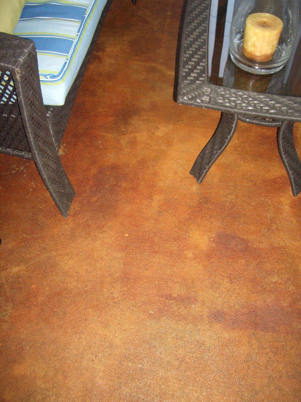 I picked out a concrete stain that I thought would be pretty neutral. It’s funny how it looked afterward, because the differences in color weren’t intended, but I was so happy with the results. I washed the concrete floor of the patio, but to be honest, I didn’t go nutso crazy doing it. The most important thing I feel is that you vacuum it. Afterward, I merely rolled the stain on, after watching some YouTube videos. Of course you need to seal it. I was a bit concerned about it being slippery, but since we don’t have a pool in this house, it wasn’t that big of a deal. I got some garage floor sealer, and again rolled it on. I put three coats of that on.