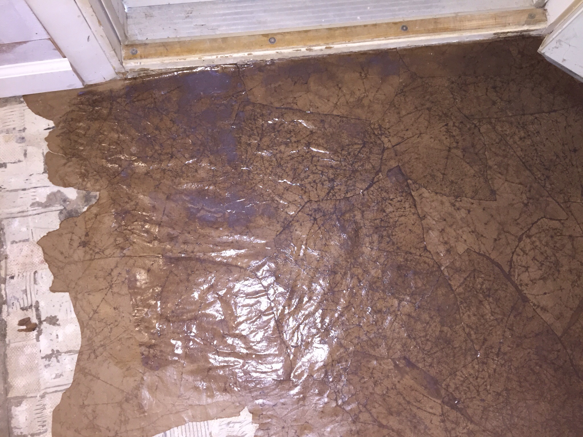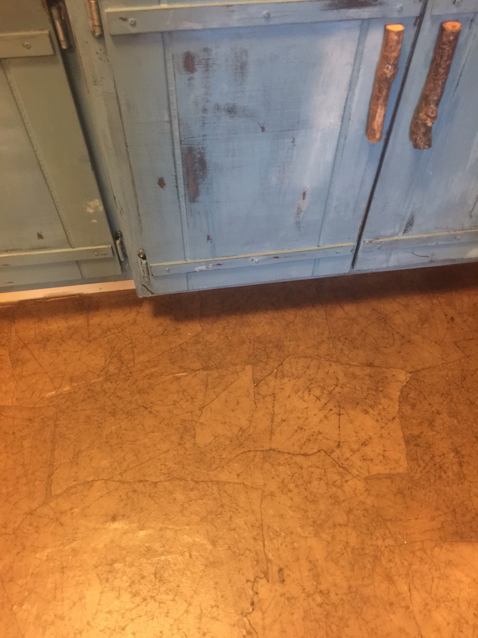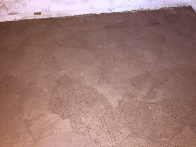 Let this dry overnight. Or as long as need be. You can tell when it’s dry. Many blogs only had instructions for putting this over a wood subfloor, so this was new territory. I did not seal our floors first, nothing. I vacuumed and mopped…..a little… This stuff went and stayed down PERFECTLY. No doubt, you will see that leather look and it is simply amazing.